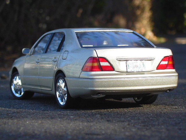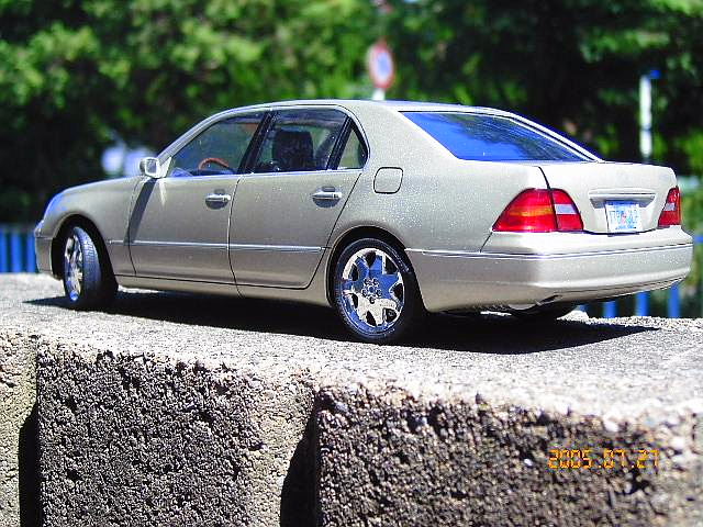 模型屋さんのカードで3000円分いろいろ買ったときに買ったキットです。 クロームメッキ処理されたホイールに、メーカーさんのセンスを感じます。 アメリカなすっきりした車にしたかったので、レクサス専用色風にしました。 メッキホイール、ゴールドということで、フロリダナンバーが似合うとおもい、フロリダの現行プレートです。 テールランプもきれいにいきました。