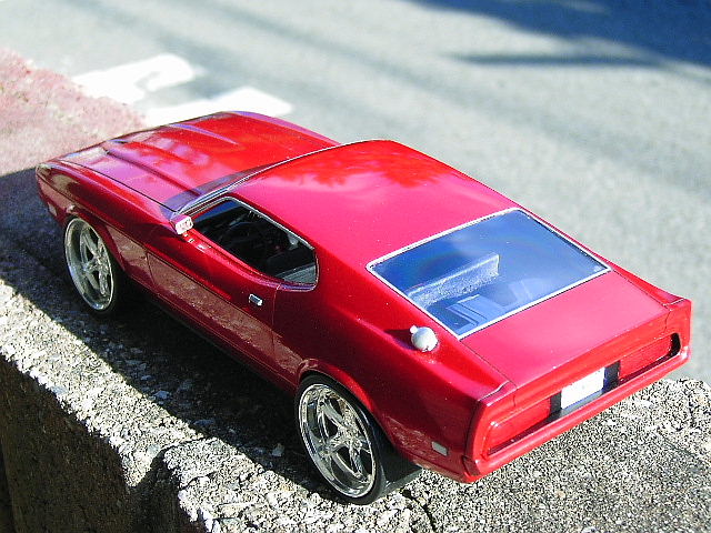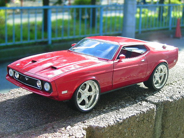 アリイのマスタングです。元がモーターライズだったので非常にあっさりしたキットでしたが、 かなりベースとしてはいいと思います。 ボディの形も良好です。 ということで、今回は遊んでみました。 某カスタムカーのアイディアより、フューエルリッドをサイドに、 フロント、リヤともにカスタムグリルを自作しています。 室内はタコメーター、ハーストシフター、2トーンシート、アンプを追加です。 鑑賞するにはいい仕上がりになりました。