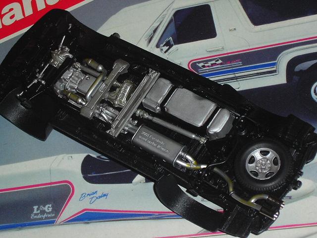 で、ダイキャストモデルみたいな、プロモモデルみたいな精巧なモールドのシャシーです。すばらしいの一言。でもなんか、プラがやわらかいんですね。余計ダイキャストモデルみたいです。