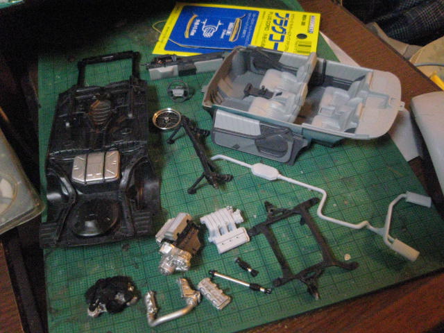 仮組みします。車高やアライメントはばっちり。 |