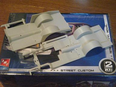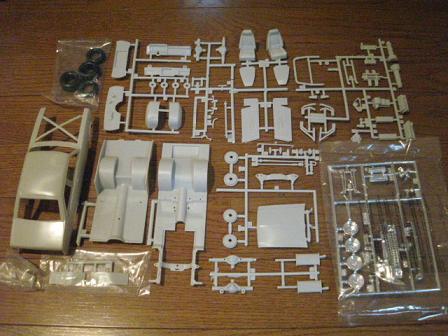 パーツです。ドラッグカーなので、かなりあついです。 エンジンは454、内装はTubbedです。ヘダースやM/Tのバルブカバー、 レーシングホイールやヘダース、ロールバーもついています。 トランスミッションはなんとLenco。 プラモデルで唯一、このキットが再現しているそうです。 70年代のプロストックレースでは定番だったものらしいです。