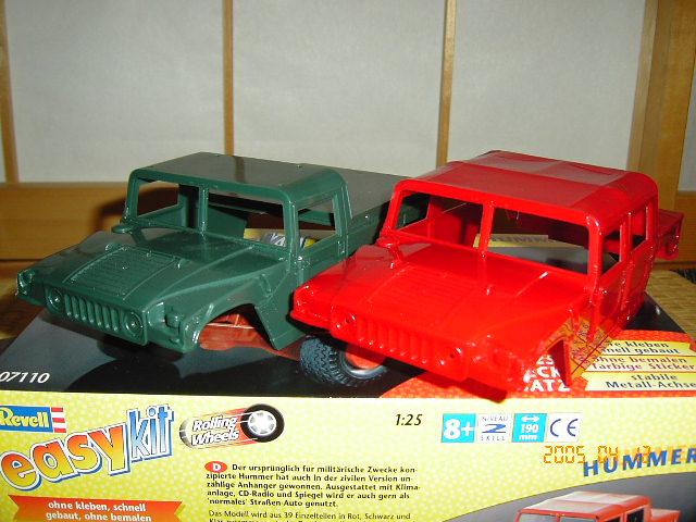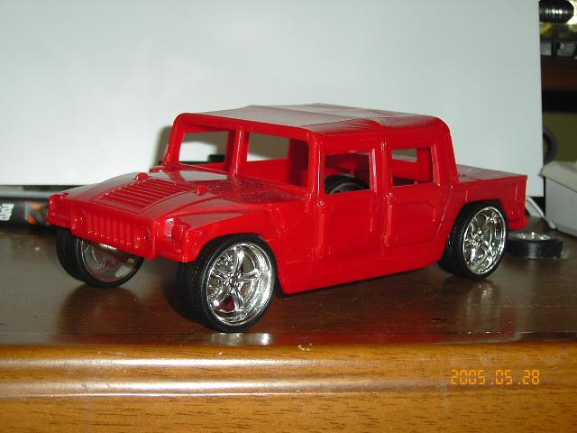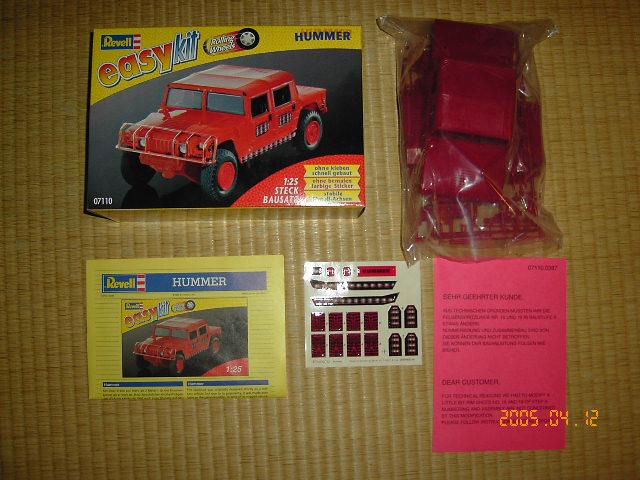パーツのモールドは文句のつけようがありません。 すばらしいです。 ハマーっていうのはどうやって作るんでしょうね。 やっぱ男らしくそのままでしょうかね。 こういうのも、ありですか? 悠々と飲み込みます。26インチ(笑 お勧めのキットです。